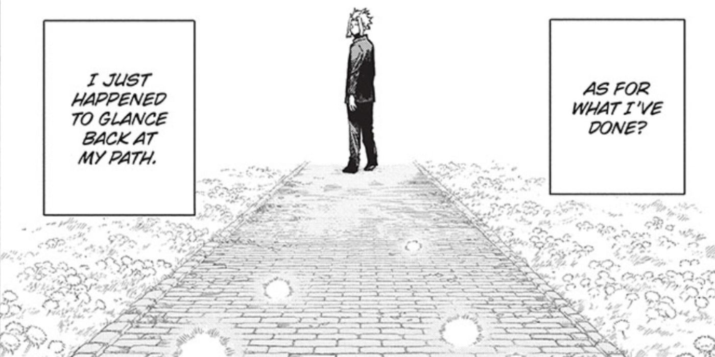 “/> Tanto juntos como por separado, cada uno de estos flashbacks ofrece una nueva visión de cómo la mayoría de las historias retratan a los héroes. La mayoría de los protagonistas tienen antecedentes trágicos o desean profundamente algo que los motive a lograr lo imposible. Deku cae en el último grupo y quiere ser un héroe como All Might, pero sus sueños se hicieron añicos cuando era uno de los pocos que no poseía una peculiaridad. Después de un tiempo, estos orígenes se mezclan. Sin embargo, este último capítulo muestra que este no fue el caso de All Might, ya que considera el momento en que su vida cambió para siempre como pura casualidad, lo que implica que no estaba buscando activamente el cambio. All Might incluso recuerda que tuvo la infancia más feliz.
