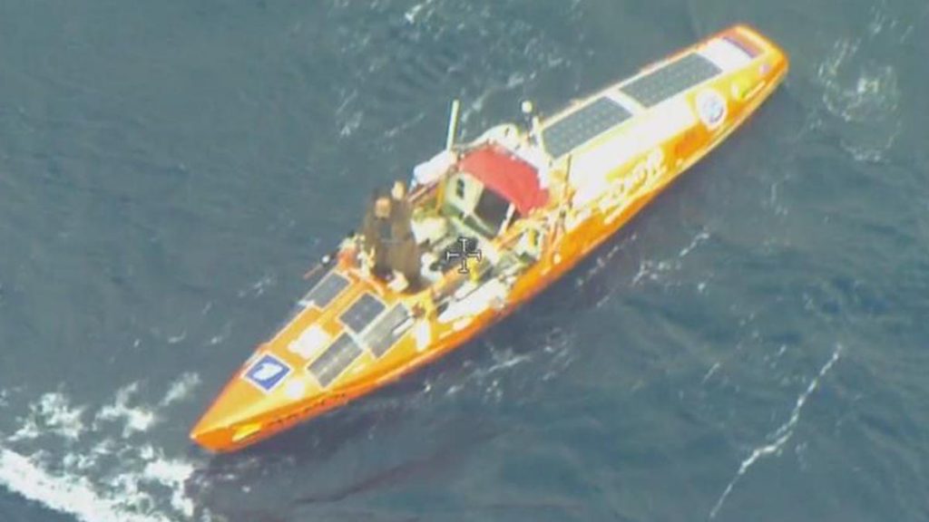 Después de meses en solitario en las aguas pacíficas, Konyukhov hizo contacto con los aviadores de la Armada chilena, que tardaron en localizarlo al encontrarse en medio de la espuma generada por las olas de varios pies que había en el océano en ese momento.