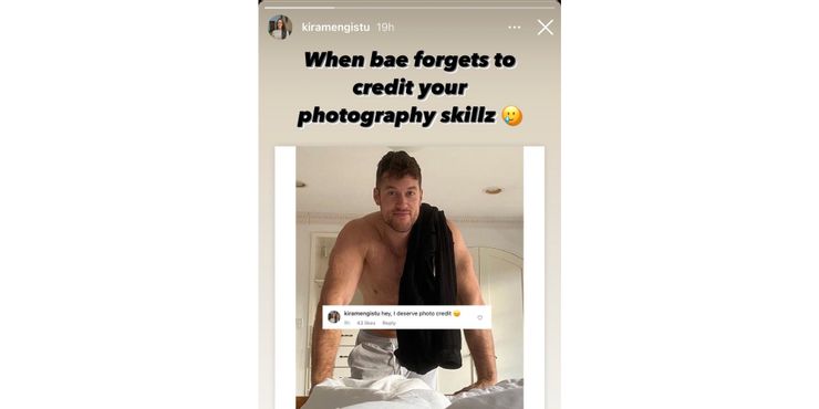 La estrella de Bachelor, Kira Mengistu, sugiere en broma que tomó una foto reciente de Instagram de Clayton Echard sin camisa e inclinado sobre una cama.