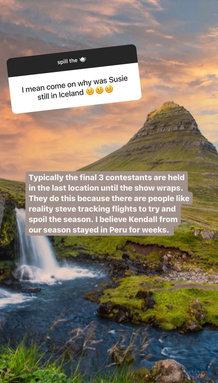 La decisión de mantener El soltero finalistas alrededor también tiene sentido por otra razón. Es probable que el soltero haya formado una conexión profunda con esos concursantes para entonces, y siempre existe la posibilidad de que uno o más de ellos tengan dudas. En el caso de Susie, es posible que haya dejado Clayton en la noche de las suites de fantasía, pero su estadía prolongada en Islandia resultó ser fortuita.