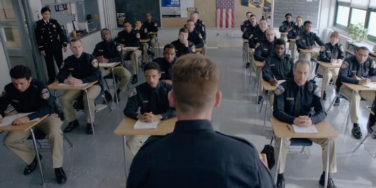 Los momentos finales de Somos dueños de esta ciudadEl final de refleja la primera escena del episodio uno, con Wayne Jenkins de Jon Bernthal liderando una clase de reclutas en la academia de Baltimore. Esta vez, los reclutas aleatorios han sido reemplazados por miembros del GTTF, así como por el comisionado de BPD Kevin Davis, su segundo al mando, y Sean Suiter. Mientras Jenkins miente acerca de evitar la brutalidad en sus métodos policiales y habla sobre sus métodos, la audiencia reunida lo vitorea, llenándolo de adoración al héroe, incluidos aquellos que se volvieron contra él. Es claramente una secuencia de fantasía, con la audiencia de Jenkins reflejando toda la institución que lo capacitó y alentó, mientras hace la vista gorda ante sus crímenes en nombre de las estadísticas infladas. Él es su héroe y un monstruo creado por ellos, y todos son culpables por la plataforma que se le dio.