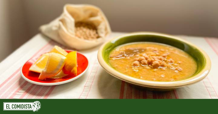 Por último, hay otro paso que recomiendo con todas mis fuerzas no saltarse: el chorrazo final de zumo de limón, muy adecuado para equilibrar el dulzor de la abundante y cremosa cebolla. No es ninguna modernidad que se me haya ocurrido a mí, sino una práctica habitual en una sopa de garbanzos griega llamada revizada. Aligera el plato, le da brillo y, si te paras a pensarlo, no es algo muy diferente a lo que se ha hecho toda la vida de Dios en España con las lentejas: revitalizarlas con un chorrillo de vinagre.