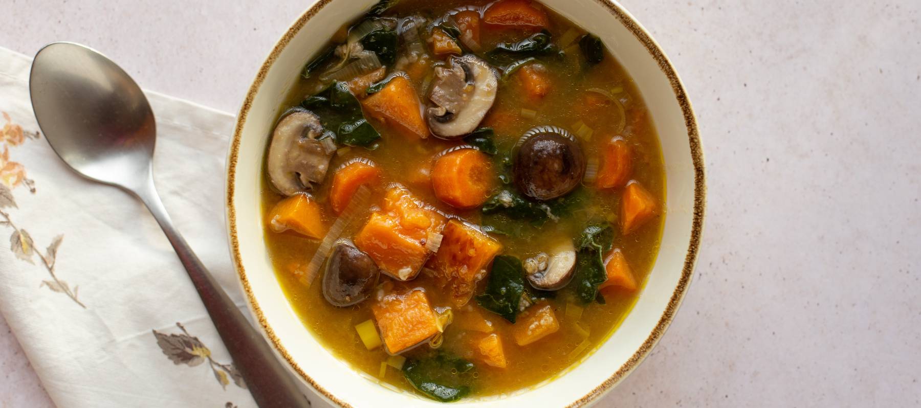 Parece que fue ayer cuando pensábamos en comidas para llevar a la playa y hablábamos de sopas y cremas frías para soportar el calor, pero la realidad es que el otoño lleva un rato por aquí, con sus lluvias, sus hojas secas y sus bajadas de temperatura. En el mercado lo notamos porque cada vez hay más calabazas, boniatos y setas, y en casa porque las sopas y platos calientes de cuchara empiezan a estar a la orden del día (a Mafalda no le gusta esto).