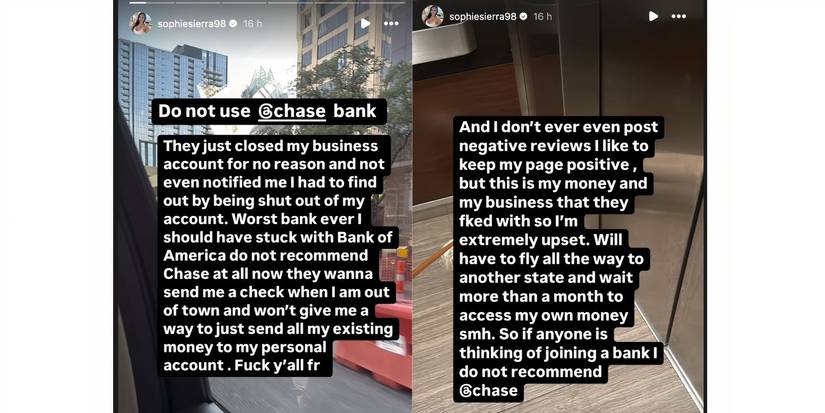 Sophie Etiquetó a Chase Bank mientras se quejaba de cómo el banco supuestamente cerró su cuenta comercial sin motivo y ni siquiera le notificó al respecto. “No use @chase bank,“Sophie advirtió a sus seguidores. Ella reveló Se enteró solo después de que fuera cerrada de su cuenta..