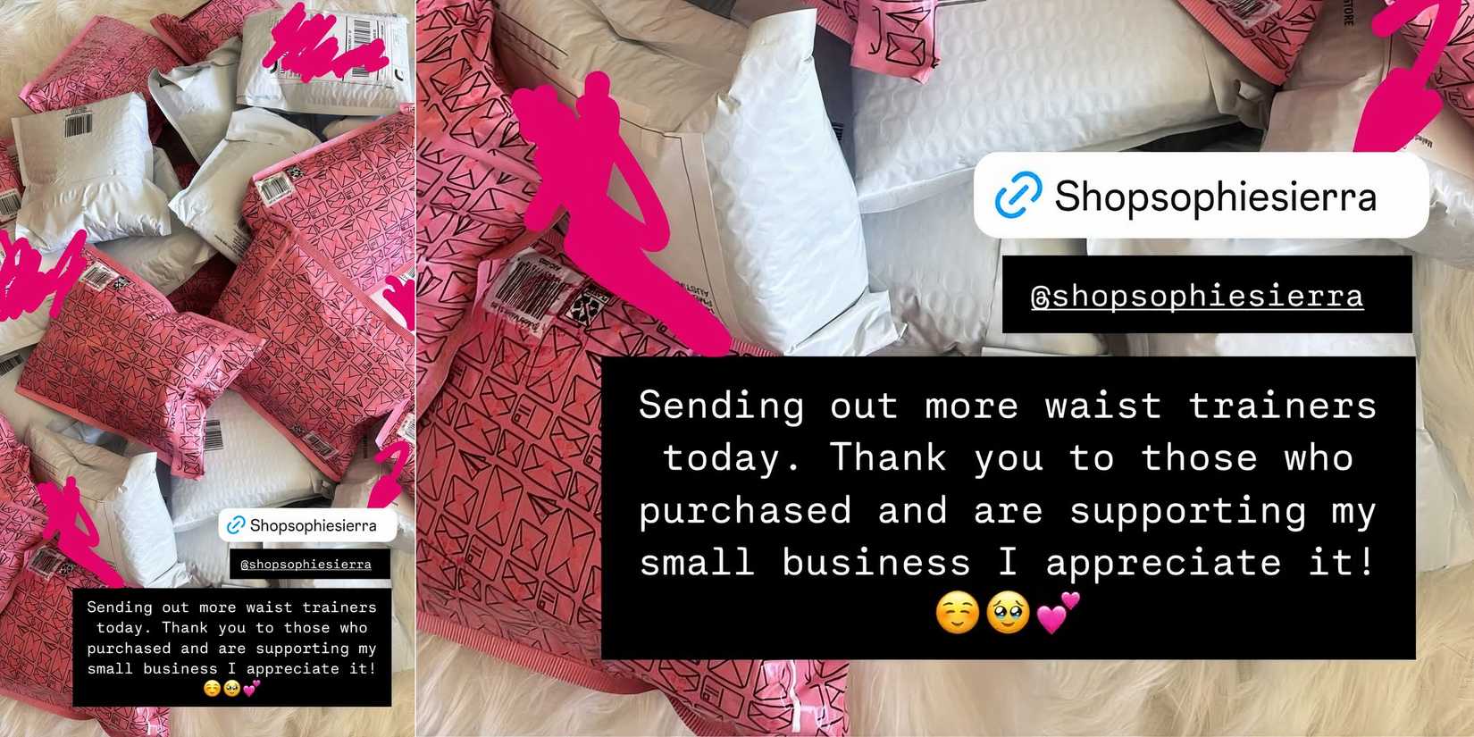 A pesar de enfrentar las acusaciones de haber sufrido procedimientos cosméticos para lograr su físico actual, Ella ha promovido efectivamente su producto a los fanáticos, algunos de los cuales se han convertido en clientes.. Sophie Recientemente publicó una historia de Instagram que muestra varios entrenadores de cintura que está enviando. Ella subtituló la imagen, “Enviando más entrenadores de cintura hoy”. Sophie expresó su gratitud a los fanáticos por apoyar su pequeña empresa, diciendo: “Gracias a los que compraron y apoyan mi pequeña empresa. ¡Lo aprecio!”