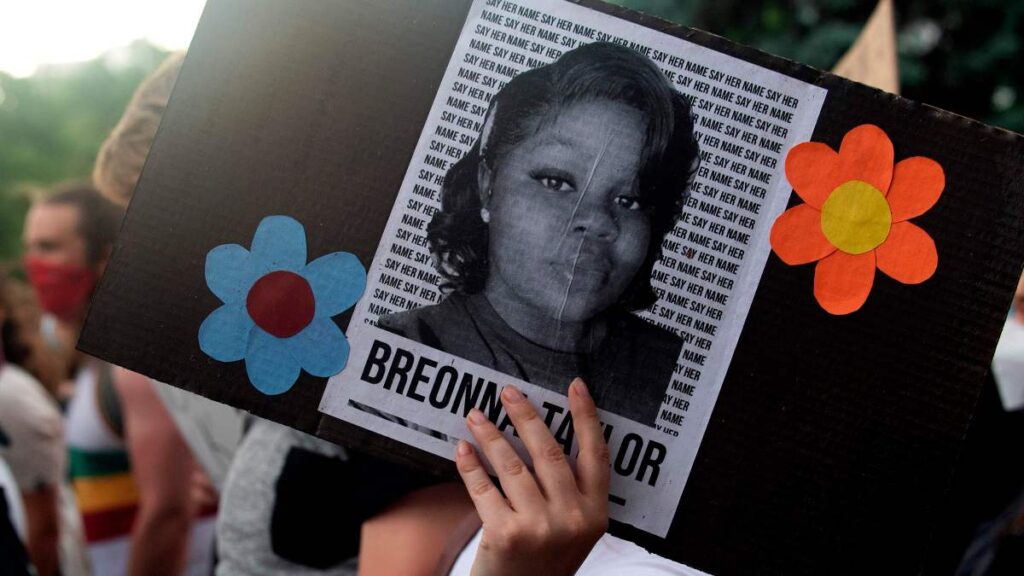 Taylor, una mujer negra de 26 años, fue asesinada en su casa de Louisville en marzo por la policía que estaba cumpliendo una orden de cateo sin tocar a la puerta. Los manifestantes han estado pidiendo que los oficiales involucrados en su muerte sean acusados. Uno de los oficiales fue despedido recientemente.