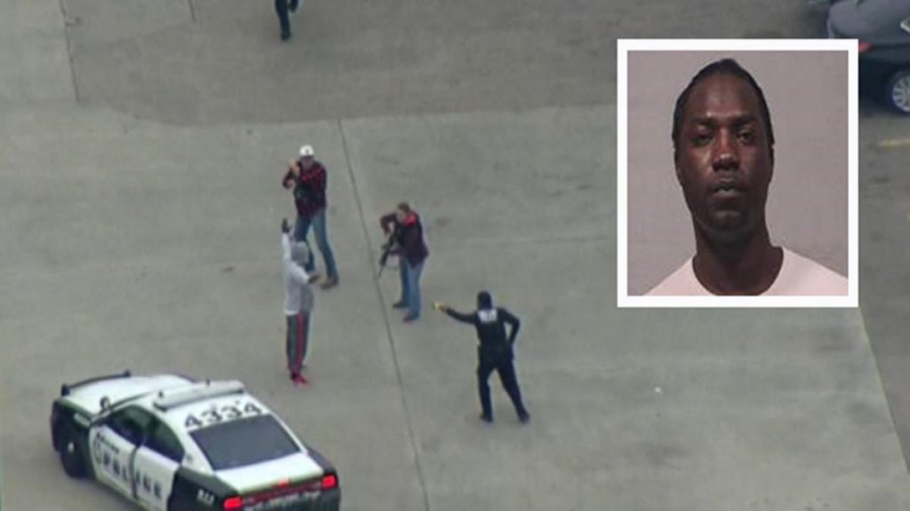 La persecución entonces se descontinuó y el helicóptero de DPS fue el único que siguió al hombre, quien se detuvo en una tienda 7-Eleven en Abrams y Northwest Hwy.