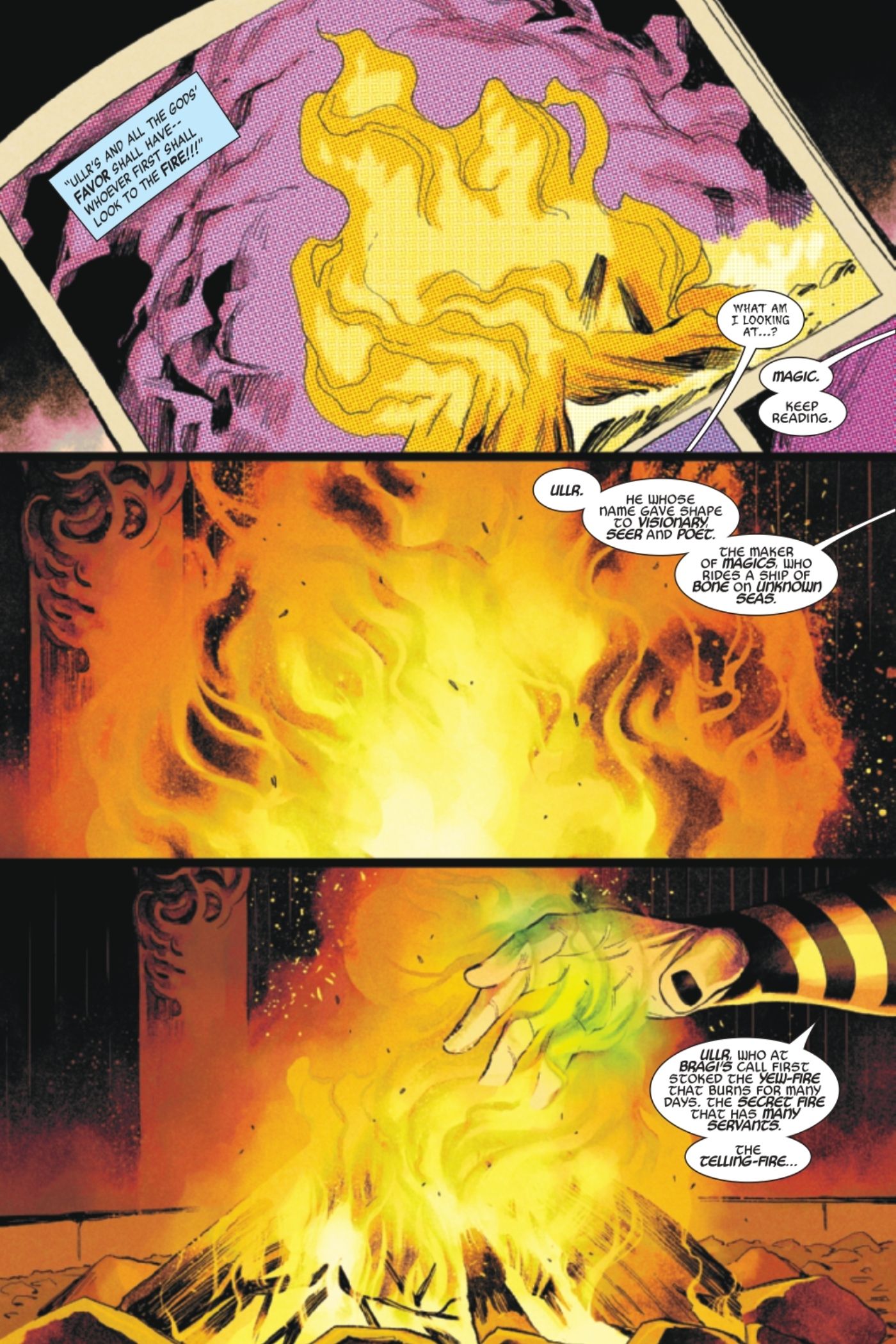 En un adelanto de El inmortal Thor #6 de Al Ewing y Martín Cóccolo, Thor y Loki se sientan alrededor de un fuego, discutiendo la naturaleza de la verdad derivada de historias y mentiras contadas en los recuerdos. Thor quiere saber todo lo que pueda sobre la situación de los antiguos dioses de Utgard y la participación de Gea en su resurgimiento, y le ha pedido a Loki, que es el Dios de las Historias, que lo ayude a descubrir la verdad.