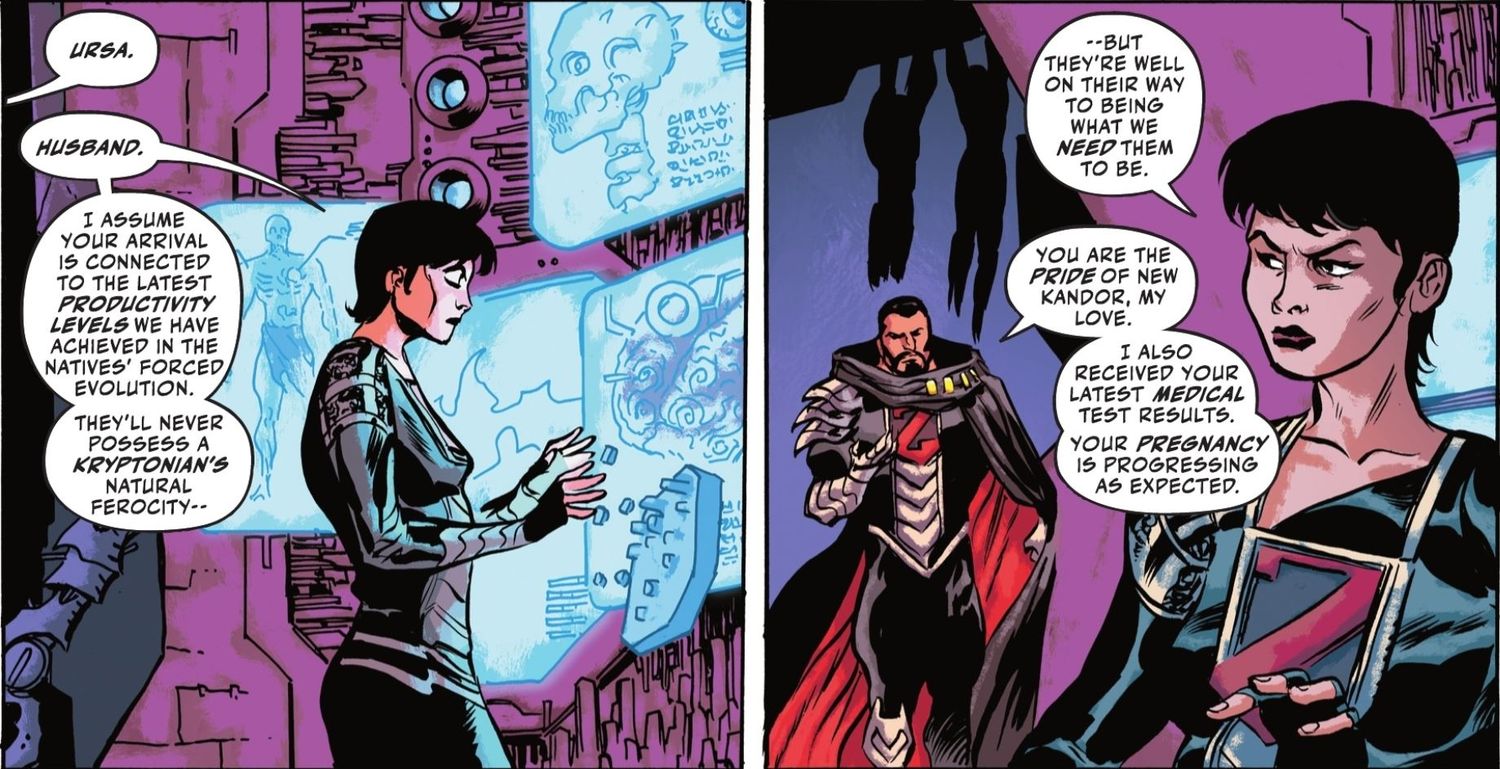 En Arrodíllate ante Zod #1 Por Joe Casey y Dan McDaid, el general Zod se embarca en una búsqueda para revivir la sociedad kryptoniana en un planeta que reclamó y rebautizó como Nuevo Kandor. Mientras tanto, tanto el general Zod como su esposa Ursa trabajan en secreto para suministrar a New Kandor poderosas armas y soldados.