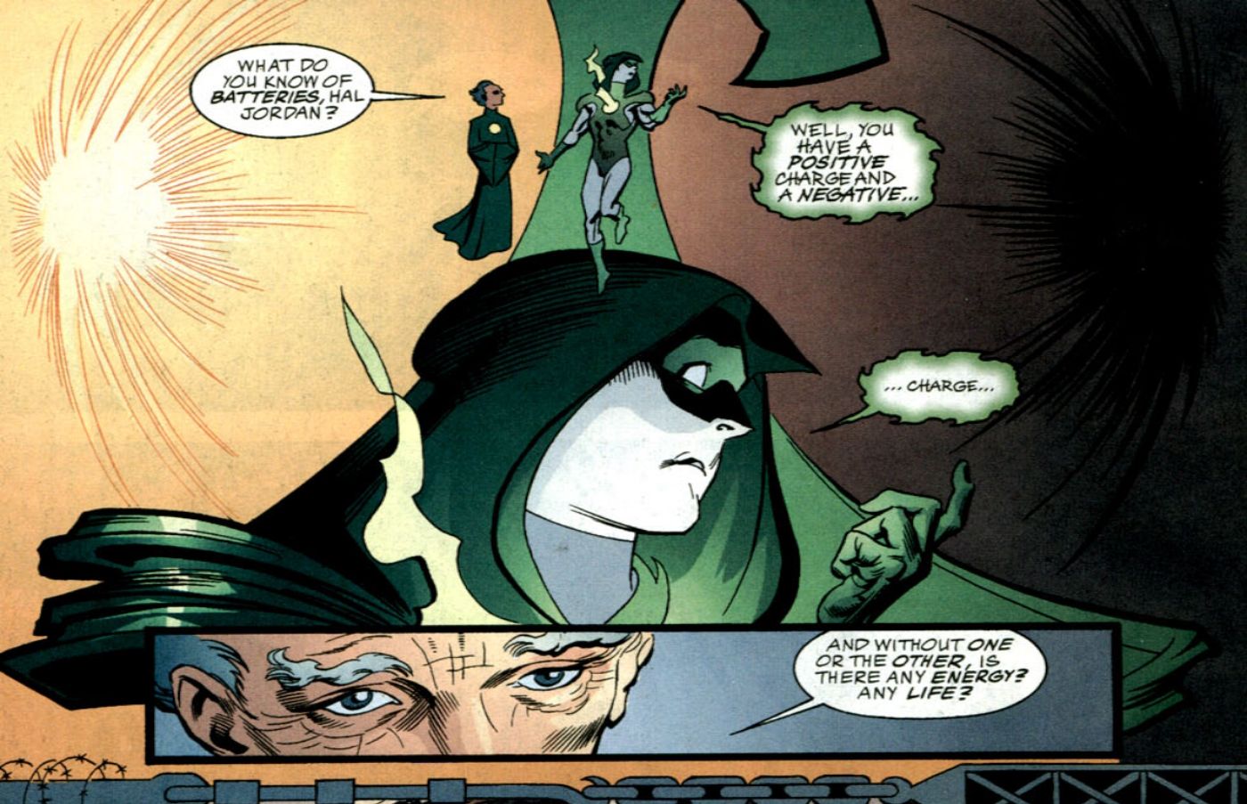 Cuando Darkseid se burla del ex Linterna Verde, Hal Jordan pierde los estribos y destruye por completo a Darkseid en el acto. Esto parece una gran victoria para las fuerzas del bien, pero, sorprendentemente, el villano se regenera rápidamente. Resulta que esto no se debe a ningún poder curativo biológico, sino a que el universo no lo deja morir.