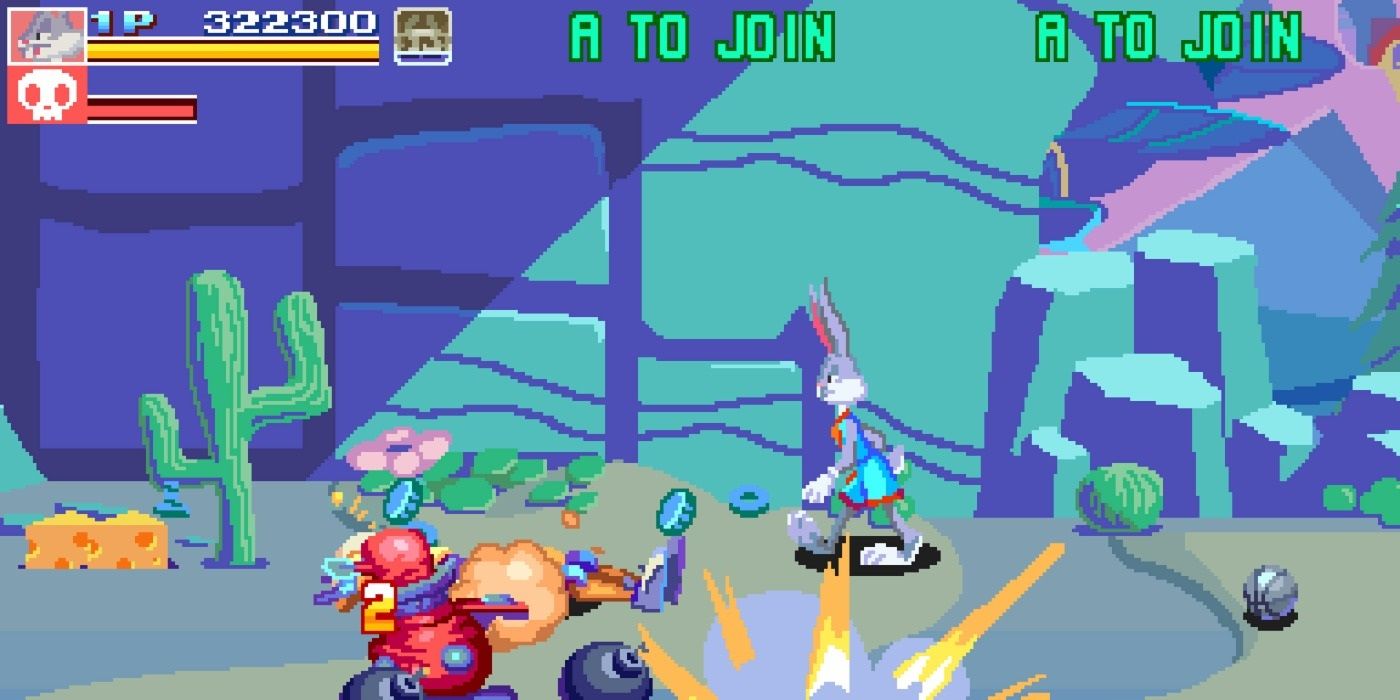 Space Jam: Un nuevo legado – El juego les da a los jugadores acceso a tres personajes: Bugs Bunny, Lola Bunny y LeBron James. Los otros miembros de Looney Tunes están disponibles como ataques especiales, que están vinculados a un medidor que se llena cada vez que el jugador golpea a un enemigo. Estos incluyen personajes como Taz, que realiza un ataque giratorio que golpea a todos los enemigos en la pantalla, o Granny, que usa su movimiento OP para proporcionar varios alimentos al jugador. Hasta tres jugadores pueden afrontar los escenarios juntos, luchando contra hordas de enemigos. Hay un puñado de tipos de enemigos robóticos a los que nos enfrentamos a lo largo del juego, así como tres encuentros con jefes.
