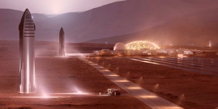 Musk todavía tiene el objetivo de construir una ciudad autosostenible en Marte para 2050. Dice que la ciudad será el hogar de un millón de personas. El objetivo era lanzar el primer Starship en 2022. Luego, en 2024, dos Starships de carga y dos de tripulación entregarían a los primeros colonos. Estos se centrarían en el agua, una primera base, la energía y la fábrica de propulsores. Luego, en 2026, seis Starships volarían a Marte. Llevarían suficiente masa para terminar las primeras etapas de la ciudad, la fábrica de propulsores, los paneles solares y todo lo necesario para minar recursos volátiles y agua y extraer CO2 de la atmósfera.