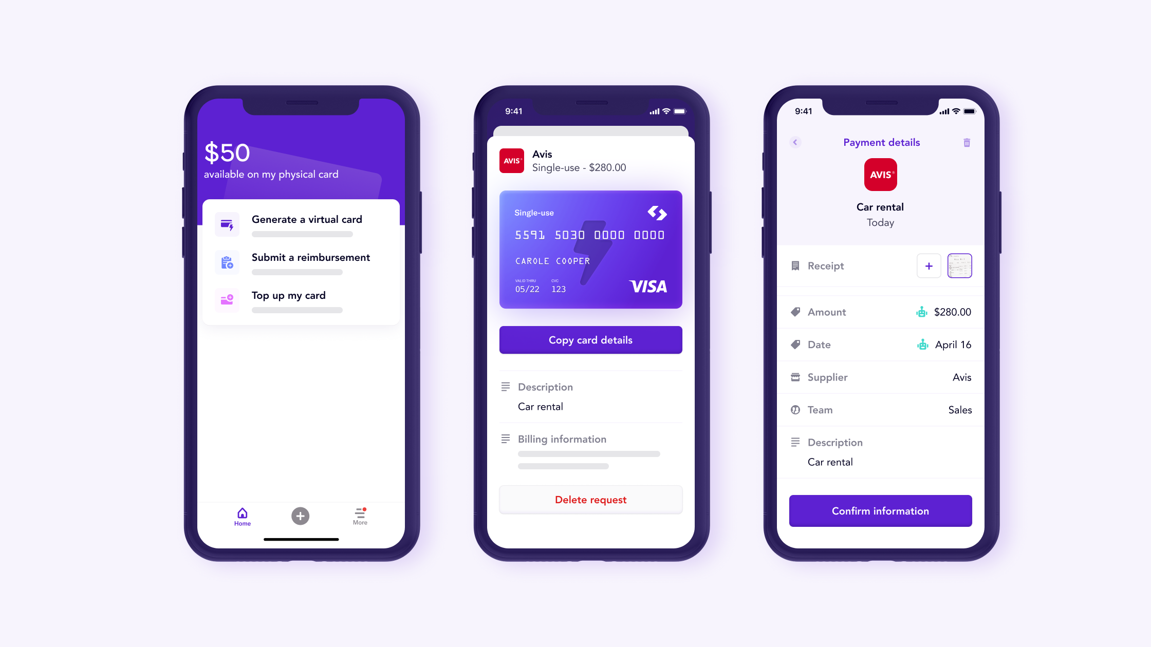 Para grandes gastos, puede enviar una solicitud a su gerente. Si aprueban su solicitud, recibirá una tarjeta virtual de un solo uso para ese gasto.