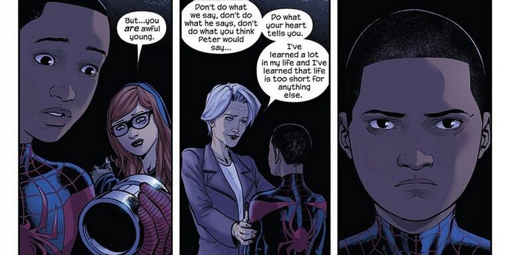 Una cosa que fue genial de que Miles Morales asumiera el papel del nuevo Spider-Man fue la reacción de la tía May de Peter Parker y su amiga cercana Gwen Stacy. Cuando Miles estaba luchando con sus dudas sobre asumir el papel, estos dos personajes se acercaron a él.