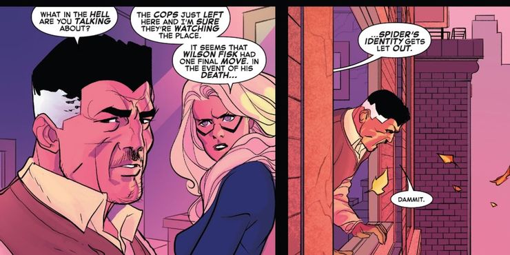 Aunque Mysterio de MCU y esta versión de Kingpin tenían la misma idea, sus motivaciones son completamente diferentes. El grandioso plan de engaño, fraude y manipulación de Quentin Beck, que fue arruinado por la interferencia de Spider-Man, no solo hizo referencia a la enemistad de los cómics, sino que aparentemente terminó cuando lo mataron accidentalmente. Su objetivo era la venganza, tanto delatar a Peter como de enmarcarlo como el verdadero villano responsable con la esperanza de proteger su legado y destruir la heroica personalidad de Spider-Man. En Sombra de araña # 2, Spider-Man se enfrentó a Kingpin después de enviar brutalmente a sus secuaces con Fisk revelando que había deducido la verdadera identidad de Peter gracias a la muerte de la tía May durante su batalla con Hobgoblin. Aunque murió poco después, su acto de venganza buscó exponer la verdad, mostrarle al mundo que este héroe se había convertido en un villano y no se le debe permitir esconderse a plena vista hasta que sea llevado ante la justicia.