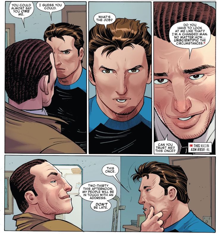 El increible Hombre-Araña 2 por Zeb Wells y John Romita, Jr. comienza con Norman Osborn llegando al apartamento de Peter, lo que inquieta comprensiblemente al héroe. Pero el antiguo Duende Verde ha pasado página y ahora está intentando de verdad corregir sus errores, empezando por darle a Peter algo que necesita desesperadamente: un trabajo. Algunos lectores pueden sorprenderse por la rápida disposición de Peter a aceptar el cambio de opinión de Norman, pero no debería ser tan sorprendente si se tiene en cuenta el tipo de hombre que es Peter. Spider-Man casi siempre trata de mostrar algo de compasión a su enorme galería de pícaros, un rasgo que es evidente incluso antes de tener en cuenta cuántos de los enemigos de Peter son personas que conoce. Esta amabilidad hacia sus enemigos es la característica que más alinea a Superman y Spider-Man.