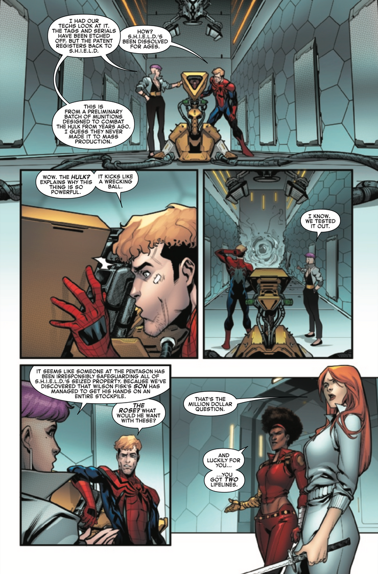 Spider-Man intenta caminar, no columpiarse, a casa cuando se enfrenta a un Thunderbolt empuñando un enorme cañón. Una explosión del dispositivo le rompe las costillas y lo envía de nuevo bajo custodia. Es solo por suerte que logra escapar, pateando el Thunderbolt en la cabeza por si acaso. De vuelta en Beyond Headquarters (donde Ben Reilly, no Peter Parker, es financiado como el nuevo Spider-Man), los científicos analizan el canon; fue diseñado para luchar contra Hulk. “Patea como una bola de demolición”, reflexiona Reilly, y según las pruebas de Beyond, puede abrir un agujero en el acero.