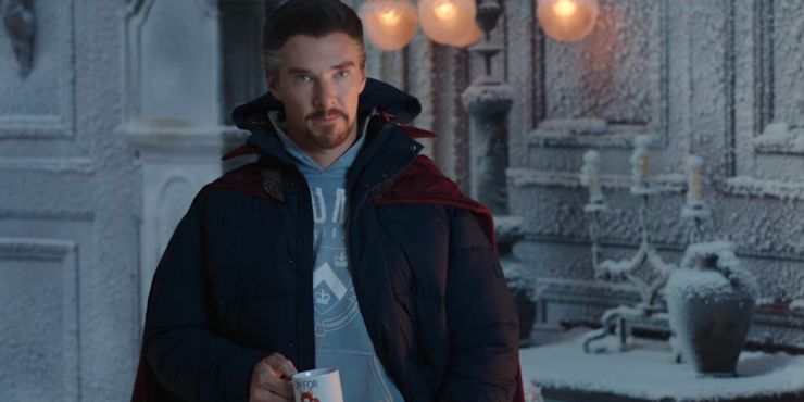 Después de que Peter mete la pata, Strange le dice “¡Scooby-Doo esta mierda!” Cuando Spidey lo llama Stephen, Strange bromea: “Eso se siente raro, pero lo permitiré”. Cuando regresa de Mirror Dimension, Strange dice: “¡He estado colgando sobre el Gran Cañón durante 12 horas!”