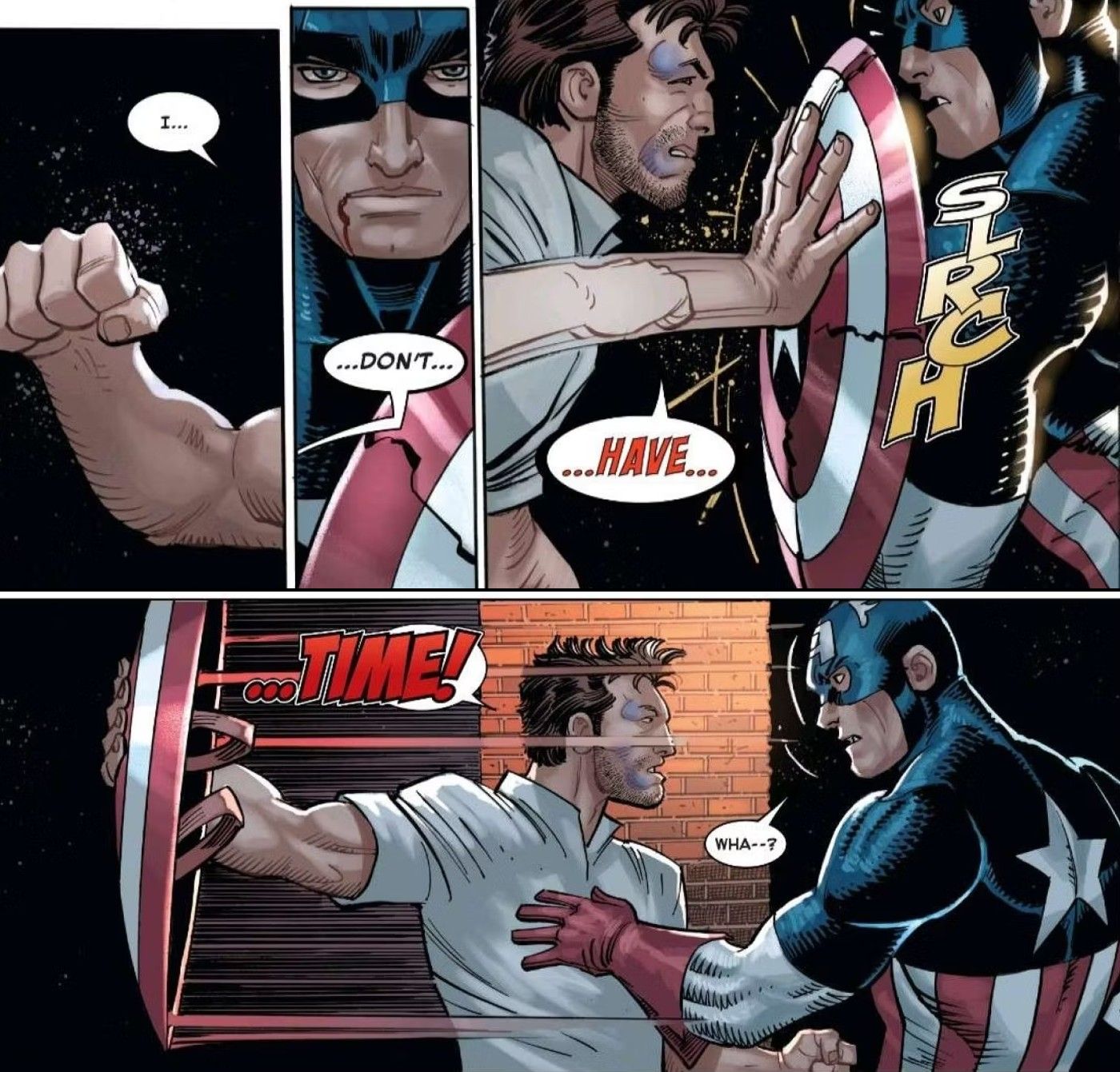 Spider-Man es buscado para ser interrogado por el gobierno de EE. UU. en el número 23 de 2022 El asombroso Hombre Araña, por Zeb Wells y John Romita Jr. Si bien a menudo está en desacuerdo con el propio gobierno de los EE. UU., el Capitán América se enfrenta pacíficamente a Peter y se ofrece a acogerlo en silencio, a lo que este último se niega, lo que lleva a una breve pelea. Si bien el Capitán América maneja fácilmente los golpes de Spider-Man, no espera que Peter use sus palmas adhesivas para confiscar su escudo y golpearlo con él, dándole a Peter un momento para escabullirse y escapar de la captura.