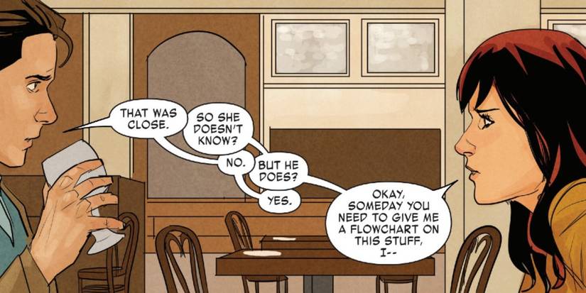 En defensa de Spidey, él y MJ rápidamente se distraen por el hecho de que varios supervillanos y supervitodos comienzan a inundarse en el restaurante con reservas propias al mismo tiempo, pero el hecho es que Peter no explica por qué no quiere que Jennfier Walters sepa quién es.