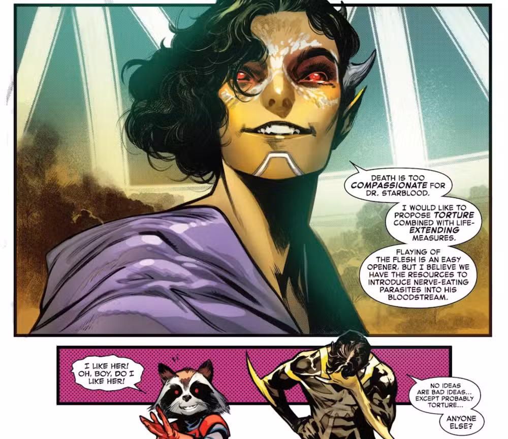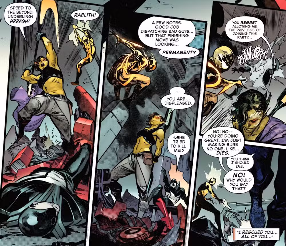 Spider-Man es conocido por sus propias dudas y odio hacia sí mismo, una faceta que no suele estar presente en sus intereses amorosos. Al mismo tiempo, Raelith tiene una inclinación por la violencia que, en teoría, la convierte en una terrible pareja para Pete. Cuando la tripulación discutía el destino de Xanto, Raelith sugirió alegremente una tortura inimaginable.