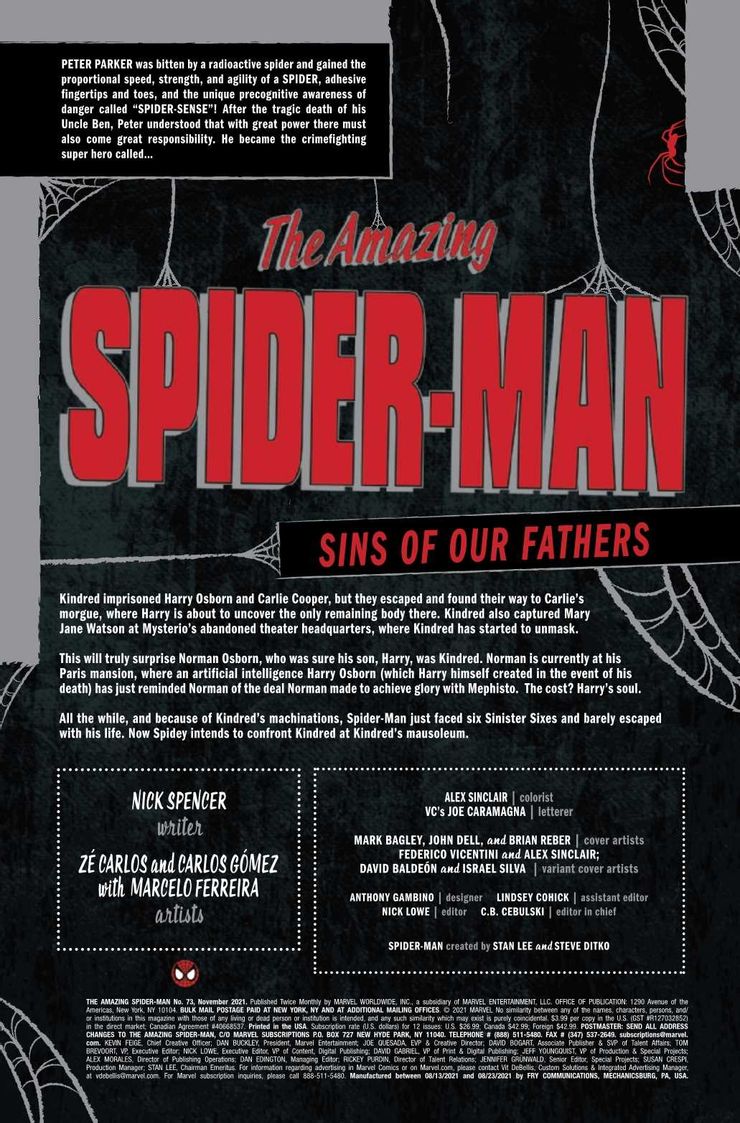 Si bien los detalles concretos aún son escasos, las recientes revelaciones de un laboratorio secreto de Osborn, las conciencias descargadas, un acuerdo oscuro con Mephisto responsable de la creación del Duende Verde y la presencia del Camaleón apuntan al concepto de que siempre ha habido más de una persona. detrás de la oscura personalidad de los Vástagos. Ahora, la vista previa de Amazing Spider-Man # 73 de Nick Spencer, Zé Carlos, Carlos Gómez y Marcelo Ferreira revela una nueva identidad detrás de Kindred. Si bien al principio parece ser Gwen Stacy, en realidad es más probable que sea Sarah Stacy, la hija de Gwen y el propio Norman Osborn. Aquí están las páginas de vista previa y la sinopsis del próximo número: