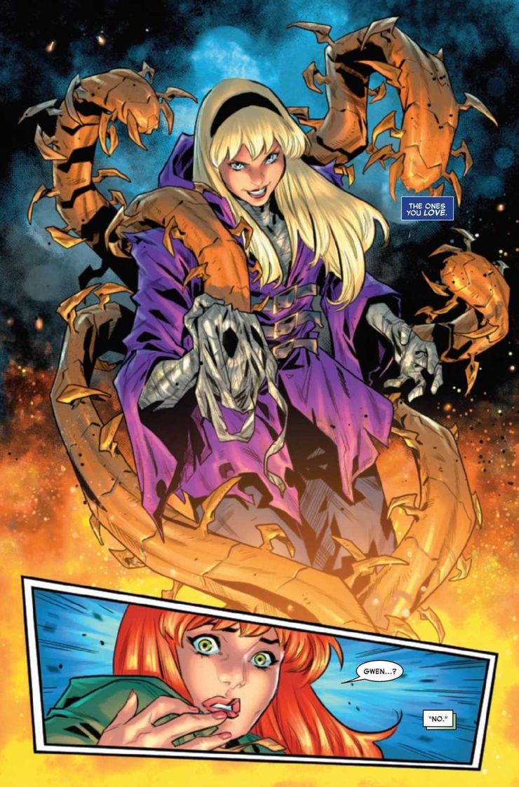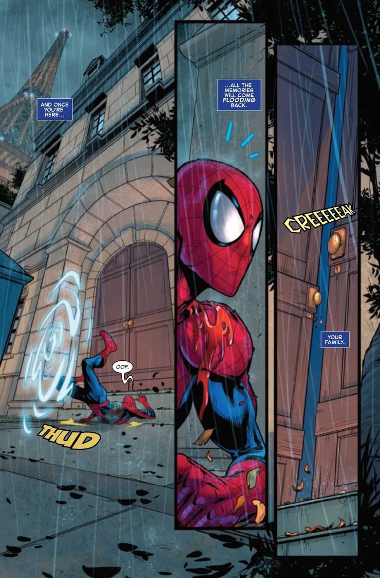 A pesar de la sinopsis bastante inútil del problema, las páginas de vista previa en sí generan bastante entusiasmo con esta gran sorpresa. Si bien inicialmente parece que el primer amor de Peter, Gwen Stacy, de alguna manera está vivo y se ha involucrado en dar vida a la personalidad de los Vástagos, también se niega que sea la propia Gwen. En cambio, la llegada de Spider-Man a París parece indicar que en realidad se trata de su hija Sarah, que se parece mucho a su madre. De vuelta durante J. Michael Straczynski Pecados pasados En la historia, se reveló que Gwen tuvo un romance con el Duende Verde de Norman Osborn, lo que finalmente la llevó a dar a luz rápidamente a gemelos superpoderosos llamados Sarah y Gabriel, cuyo crecimiento acelerado provino de la fórmula Goblin en su sangre gracias a Norman. Si bien Norman inicialmente les dijo a los gemelos que Peter era su verdadero padre y responsable de la muerte de su madre, la verdad finalmente se reveló en el conflicto resultante, terminando con Gabriel enloqueciendo cuando el Grey Goblin y Sarah se unieron a Interpol para recibir su ayuda en encontrar a su hermano.