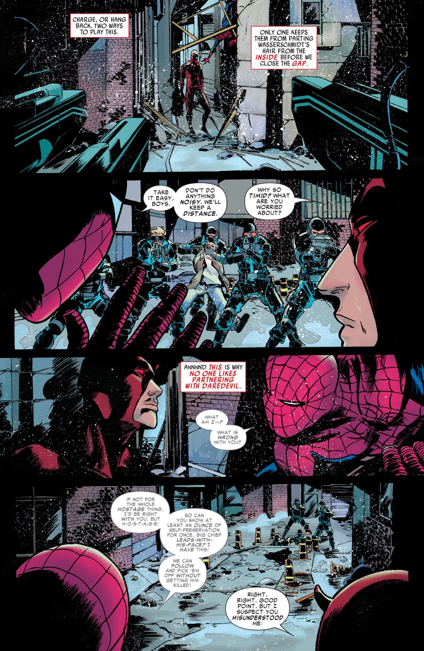 - Los diferentes enfoques de Spider-Man y Daredevil ante una situación de rehenes revelan sus personalidades contrastantes, siendo Daredevil imprudente y Spider-Man cauteloso.