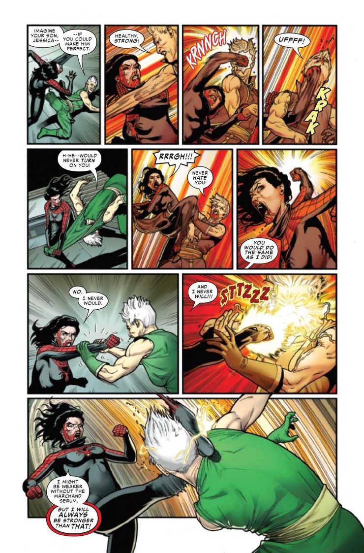 Spider-Woman ha pasado por el escurridor en los últimos números, y canaliza esa ira en una de las peleas más brutales de su carrera.