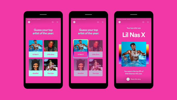 Las historias, naturalmente, también aparecerán en Wrapped de este año. Recientemente se descubrió que la compañía estaba probando una función de Historias en su aplicación, una continuación de las pruebas que Spotify comenzó el año pasado con Storylines y nuevamente en enero de 2020, cuando comenzó a permitir que los influencers publicaran Historias para presentar sus listas de reproducción. Ahora, esos influencers también incluyen a los propios músicos, según las últimas pruebas.