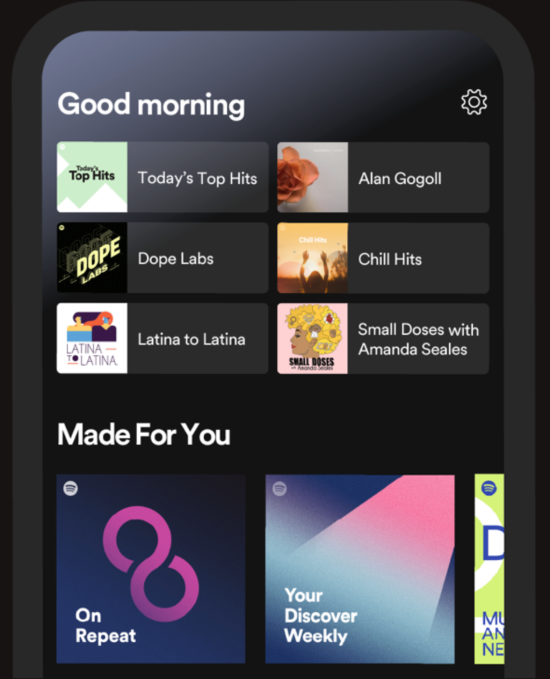 El concepto para la nueva pantalla de inicio es similar al que Pandora lanzó recientemente con su pestaña personalizada “Para usted” a fines del año pasado. Al igual que Spotify, la pestaña de Pandora también personaliza el contenido que se muestra en función de la hora del día, además del día de la semana y otras predicciones que puede hacer sobre el estado de ánimo o la actividad potencial de un cliente, en función de los datos de escucha anteriores.