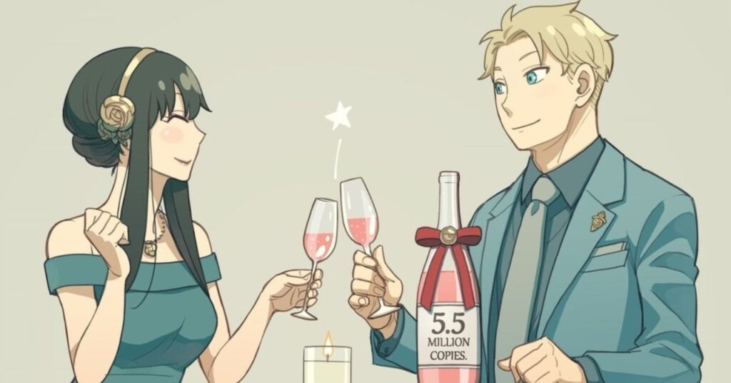Cuando el Volumen 5 de la serie se lance en Japón el 4 de septiembre, Espía x Familia tendrá oficialmente 5,5 millones de copias en circulación. Este número incluye lanzamientos físicos y digitales de la serie, lo que significa que cada volumen habrá vendido en promedio al menos un millón de copias cada uno a través de ventas iniciales y reimpresiones. Para celebrar esta monumental noticia, el creador de la serie Tatsuya Endo compartió una nueva ilustración de Loid y Yor Forger celebrando el hito a su manera.