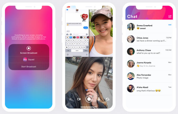 Squad aprovecha el ReplayKit de Apple para compartir pantallas. Si bien se anunció en 2015, no fue hasta iOS 12 de junio de 2018 cuando ReplayKit se volvió estable y lo suficientemente fácil como para integrarlo en una aplicación de consumo para adolescentes. Mientras tanto, las pantallas de tamaño extra y las redes LTE veloz y las próximas 5G permiten que se pueda compartir la pantalla. Y con el envejecimiento de Instagram y la reducción de Snapchat, existe la demanda de una red social más íntimamente conectada.