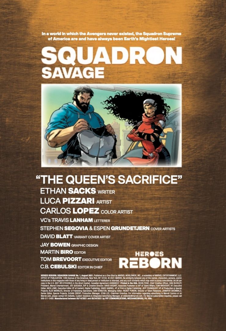 El hecho de que la SSA fuera el principal héroe de esta nueva realidad tuvo que haber sido una acción intencional de Mephisto, ya que él y su sirviente Phil Coulson hicieron que todo el equipo de contrapartes de la Liga de la Justicia se lavara el cerebro mucho antes de que la realidad fuera incluso alterada. Ahora, Coulson es presidente, Mephisto es adorado como un dios, y todo el Universo Marvel es diferente y gran parte de él ahora se parece al Universo DC. Sin emabargo, Escuadrón salvaje # 1 de Ethan Sacks y Luca Pizarri revelarán que hay algunas misiones que requieren métodos más oscuros y un enfoque diferente en lugar de enviar al Escuadrón Supremo.