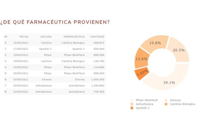 En la plataforma se especifica la cantidad de vacunas antiCovid que fueron recibidas desde diciembre del año pasado hasta mayo de este 2021, y se observa que en abril México recibió la mayor cifra de dosis con casi 12 millones en totalidad.