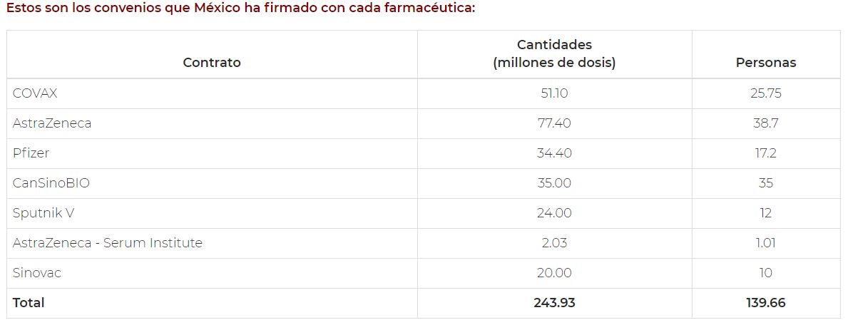 Te podría interesar: México tiene contratos firmados para adquirir un total de 232.33 millones de vacunas anti-Covid | Entérate