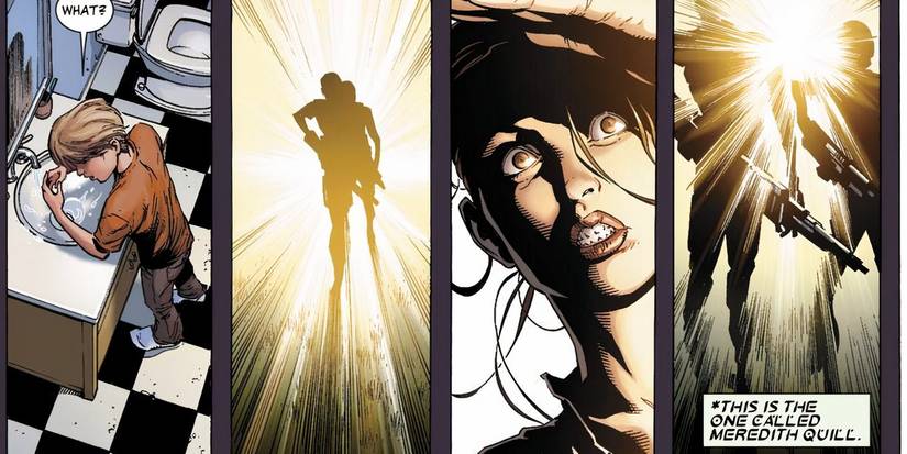 Debido a que está en medio de la guerra, J’son abandona rápidamente la Tierra una vez que se repara su nave y luego, Meredith se encuentra embarazada de Peter. La muerte de Meredith en los cómics se produjo cuando Peter Quill tenía 10 años y un grupo de extraterrestres llegó a su casa y prometió acabar con el linaje Spartax.disparando y matando a la madre de Peter. Peter Quill logra defenderse disparando a los extraterrestres, pero la muerte de su madre impulsó a Quill a jurar venganza y fue parte de su motivación para viajar al espacio.
