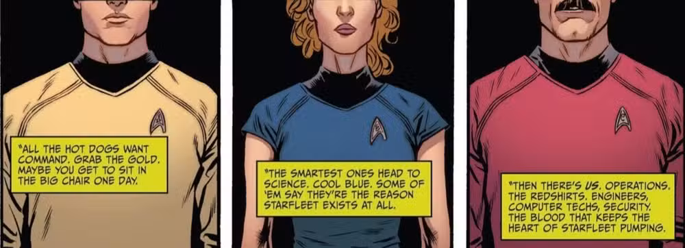 Las otras ramas de la Flota Estelar parecen llevar, al menos en apariencia, vidas mucho menos glamorosas. Esto fue particularmente cierto para el personal de Operaciones durante el tiempo que Kirk estuvo en el Empresa. La División de Operaciones incluye seguridad y La serie original estaba lleno de desafortunados “camisas rojas” que encontraron una variedad de finales espantosos en misiones planetarias.