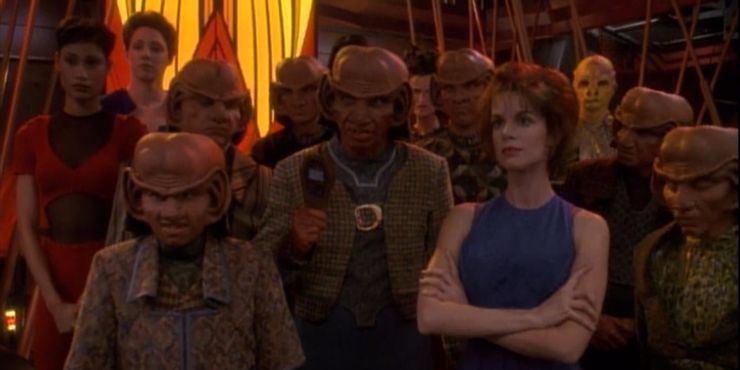 Fuera de los habitantes Ferengi de la estación, muchos de los mejores episodios de Espacio Profundo Nueve giraba en torno a otros personajes Ferengi. El episodio “Reglas de adquisición” sigue a una mujer ferengi llamada Pel que debe infiltrarse como hombre para realizar negocios importantes con otra raza. Mientras negocia, comienza a desarrollar sentimientos románticos por Quark.