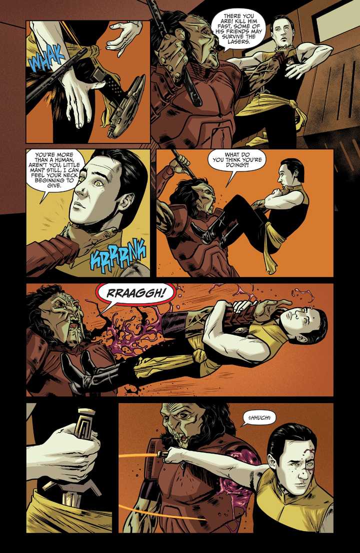 El origen de los datos, Escrito por David Tipton y Scott Tipton y dibujado por Joshua Hood, sigue los primeros días de Data bajo el mando de Jean Luc Picard, aquí un oficial imperial fascista. Enviado para dejar una rebelión, los datos se involucran con un disidente de Nausicaan.
