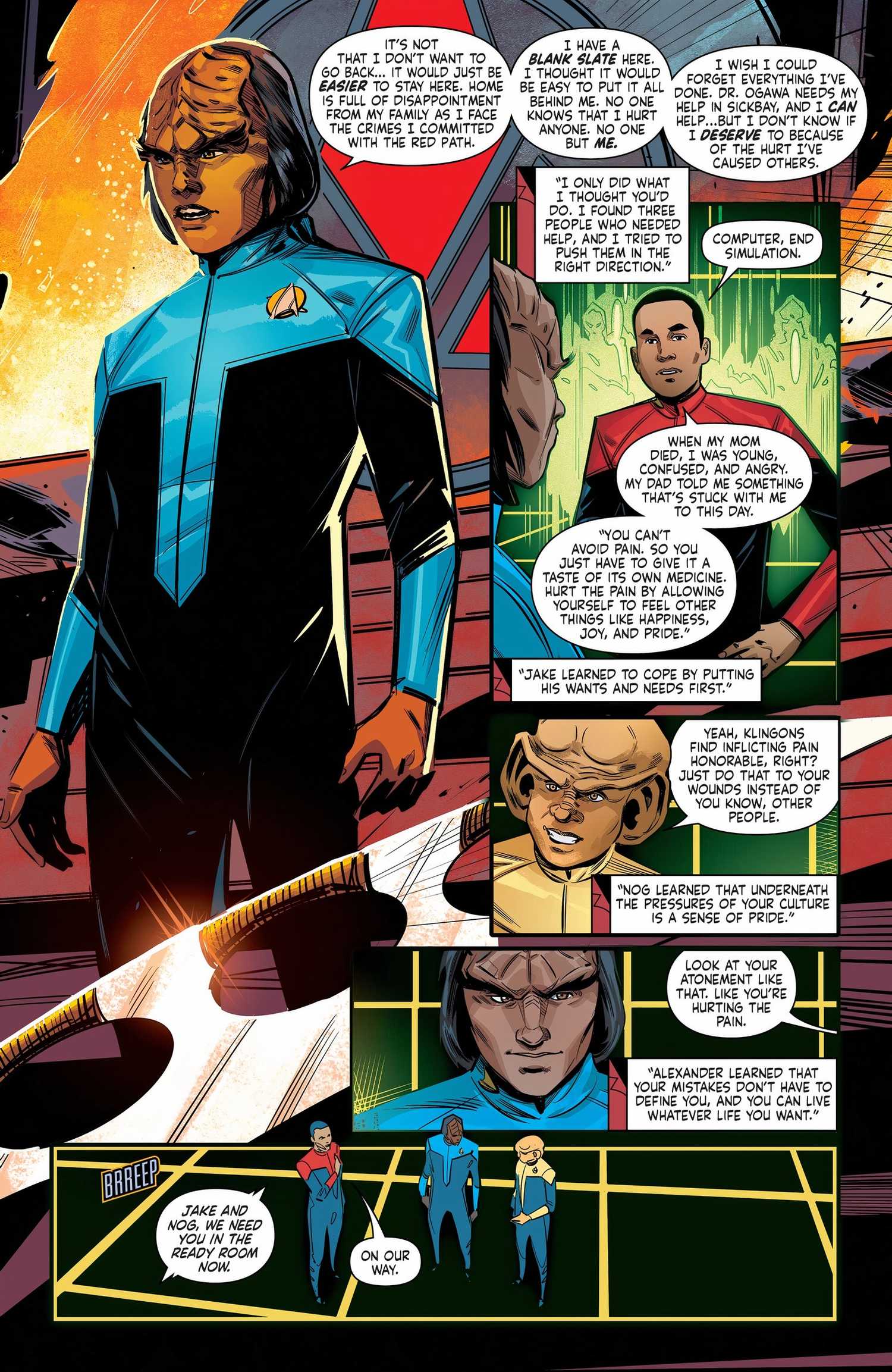 La decisión de Alexander de dedicarse a la medicina puede parecer fuera de lo común en un principio, pero… Hijos de Star Trek El número 4 presenta argumentos convincentes de por qué tiene sentido. El dolor y el desamor han sido los compañeros constantes de Alexander durante toda su vida. Nog le señala a Alexander que los klingon consideran honorable infligir dolor y ven su carrera en la medicina como “infligir dolor al dolor”. Aquí, el dolor se convierte no solo en el de los pacientes de Alexander, sino también en el dolor que él lleva dentro. Alexander había encontrado su vocación por fin.
