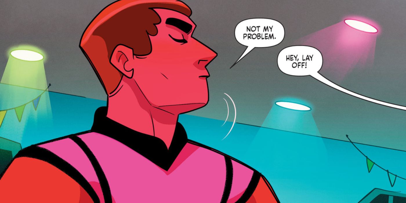 En Star Trek: La Academia de Picard #2 del escritor Sam Maggs, la artista Ornella Greco, el colorista Charlie Kirchoff y el rotulador Jeff Eckleberry, Picard es testigo de cómo un estudiante que no conoce es intimidado durante una fiesta a la que no quería asistir.