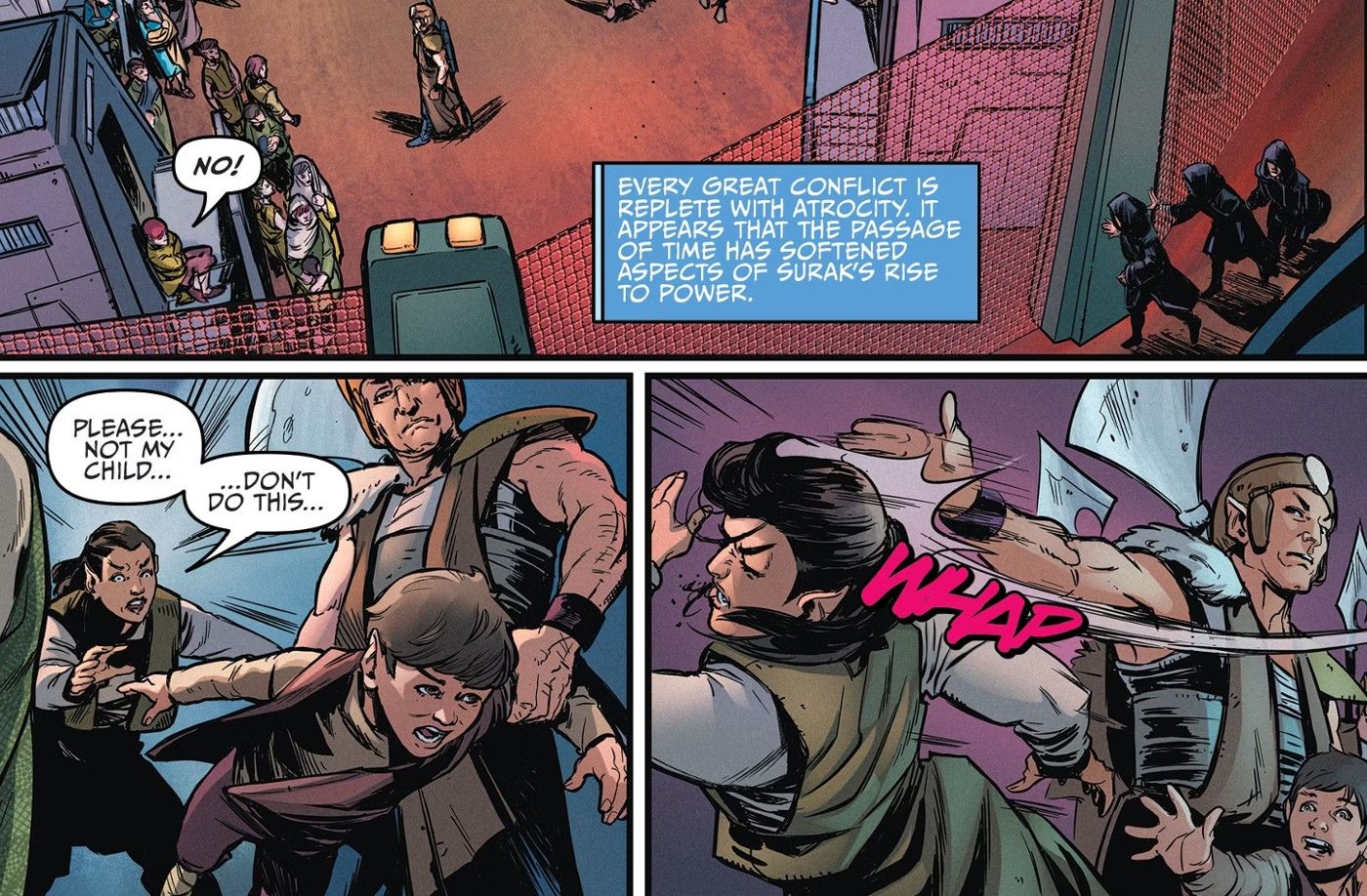 Este número pinta una imagen oscura de este capítulo en la historia de Vulcan, y no rehuye mostrar los horrores y el derramamiento de sangre que acompañaron el ascenso de Surak a la prominencia. Spock ha descrito a los antiguos vulcanos como belicosos y agresivos, y esas tendencias se muestran aquí, desde ambos lados. Los seguidores de Surak están armados y se llevan activamente a los niños de sus familias para reeducarlos. Todo esto sacude a Spock hasta la médula, ya que se entera de que el bastión de la lógica fue un tirano sediento de sangre durante su propia ascensión.