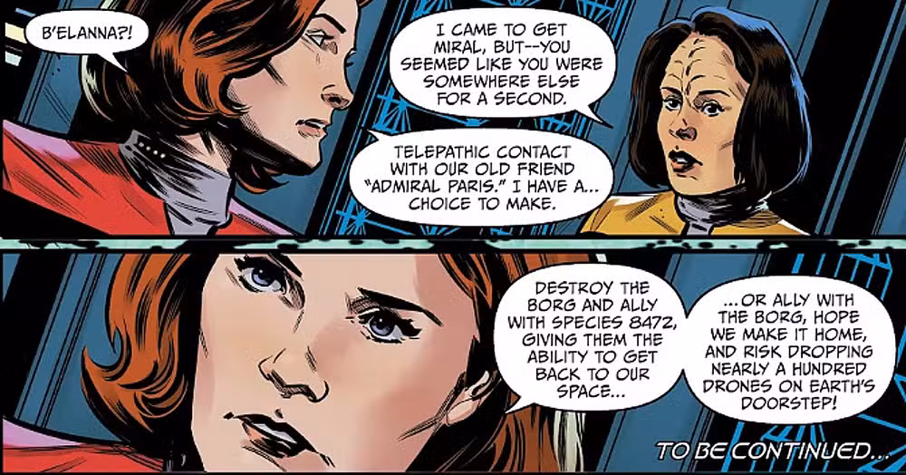 Esto sugiere que los lectores deberían estar preparados para algunas sorpresas en regreso a casa penúltimo número, al menos en lo que respecta a la representación de los Borg en la serie.