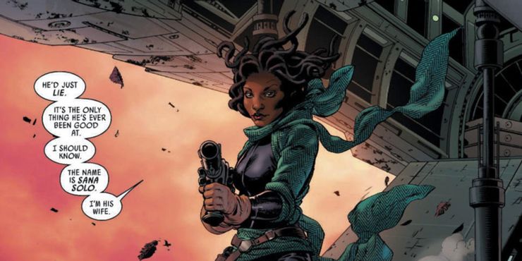 los Guerra de las Galaxias La carrera titular fue realmente el buque insignia de Marvel Comics en el momento de su lanzamiento y una oportunidad para que la marca editorial revisara personajes icónicos y presentara algunos de los suyos. Técnicamente comenzando en el número 8 pero desbordando brevemente en el número 6, Enfrentamiento en la luna del contrabandista actúa como el debut de la popular Sana Starros.