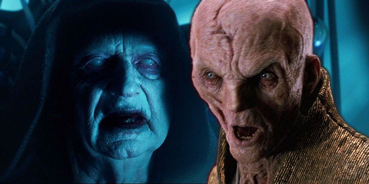 Palpatine no apareció en Una nueva esperanza en persona, aunque los personajes hablan tanto de él que su presencia se cierne por todas partes. Snoke tiene un pequeño papel que desempeñar en términos de aparecer físicamente en El despertar de la fuerza, pero Kylo Ren trabaja bajo su mando.