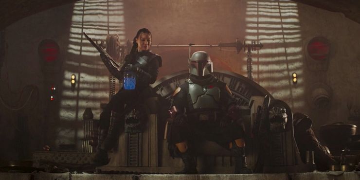 En una escena posterior al crédito, Boba Fett y Fennec Shand llegan a Jabba, el icónico palacio de los Hutt donde Bib Fortuna se sienta como Daimyo. Fett mata a Fortuna, toma el trono para sí mismo y El libro de Boba Fett se anuncia a audiencias asombradas.
