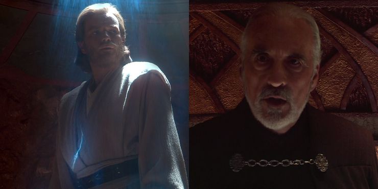 La renuencia de Dooku a matar a Obi-Wan Kenobi durante sus dos batallas parece increíblemente extraña, especialmente teniendo en cuenta lo que estaba en juego. En El ataque de los clones, Dooku logra separar a Anakin de la pelea golpeándolo con un aluvión de relámpagos de la Fuerza, dejándolo a él y a Kenobi solos para luchar.