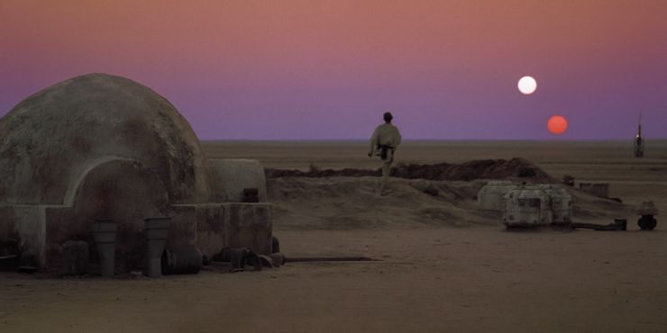 El personaje de Luke Skywalker al comienzo de Una nueva esperanza anhela estar entre las estrellas, alejarse de la desolada roca de Tatooine y volar alrededor de la Galaxia.