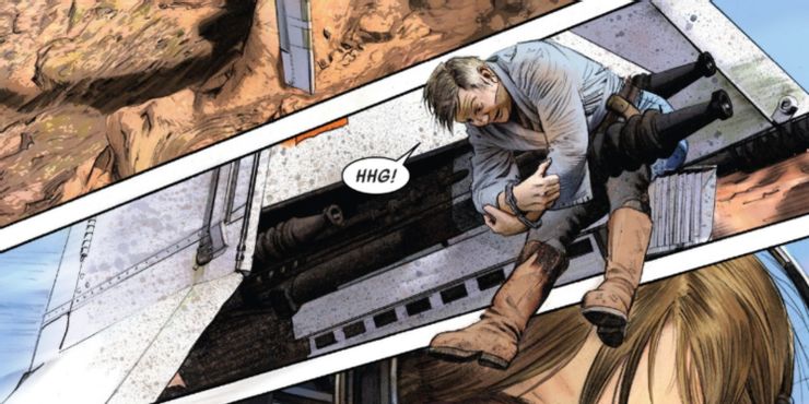 Ese no fue el único rescate de un individuo encabezado por Luke Skywalker en la trilogía, aunque, como, en Una nueva esperanza, Luke Skywalker rescata a la princesa Leia en uno de los momentos más icónicos de la película.